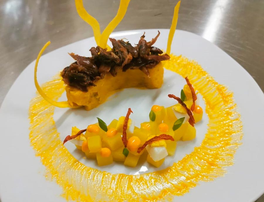 El resultado de esa inspiración fue «Sol de la Chiquitania», un plato de comida elaborado en base a plátano maduro, plátano verde, pato, papaya verde y maracuyá, entre otros.