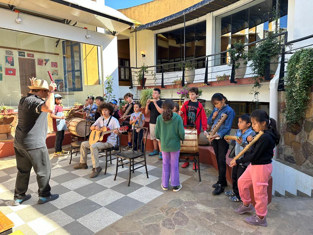 Manuel Castellanos, maestro colombiano invitado por la Fundación Bolivia Clásica para participar del Festival TakuApu en Samaipata. En la imagen, durante el ensayo con los integrantes de la Escuela de Músicas Tradicionales de Samaipata, en instalaciones del Centro Artístico Pedagógico Integral (CAPI).