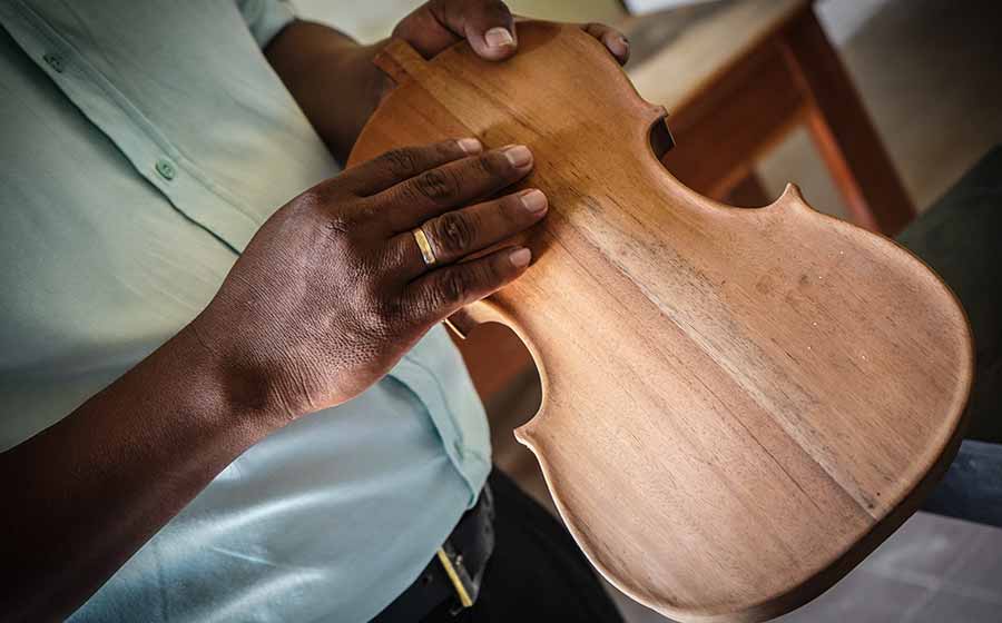 El hombre es maestro en el trabajo en madera y en la confección de violines. En su intervención abundó en detalles sobre el proceso de fabricación de este instrumento musical, gran parte del mismo manual, pero que demanda del apoyo de maquinaria especializada para el corte y cepillado de la madera, sometida antes a otro proceso de secado especial para garantizar su calidad.