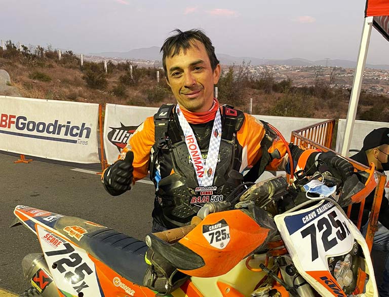 A bordo de su KTM, Salvatierra fue el mejor en los 750 kilómetros del recorrido por el desierto de Baja California. Chavo necesitó 13 horas, 16 minutos y 17 segundos para cruzar la meta. Con ello se consolidó como ganador de la prueba, logrando dos podios consecutivos en la Baja 500 (el año pasado también ganó esta carrera).