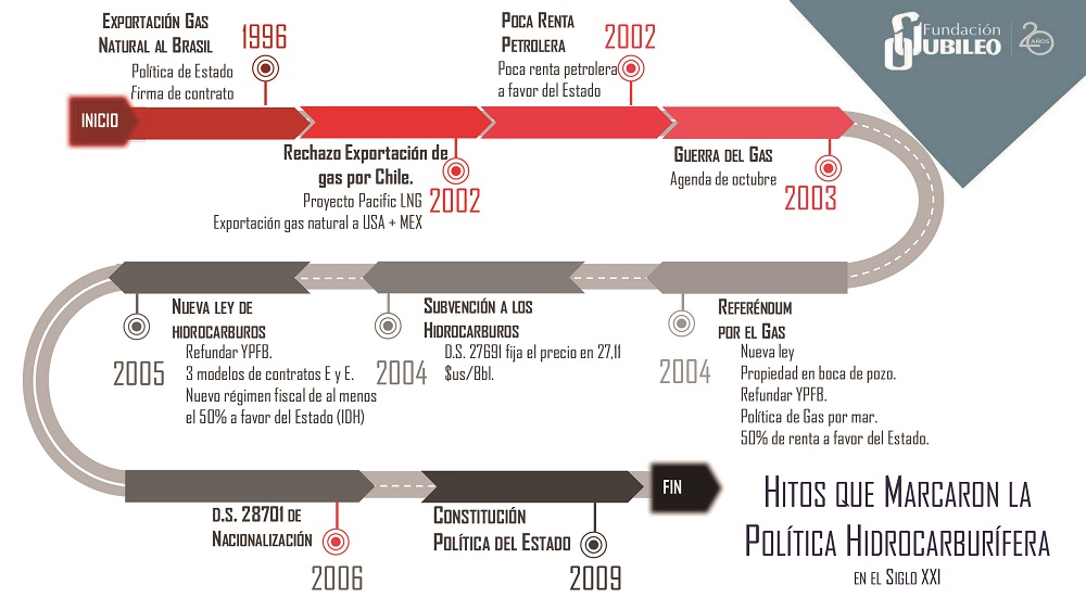 La inestabilidad social y política de inicios del siglo 21, que decantó en el Referéndum por el Gas del año 2004, delineó la política hidrocarburífera nacional que luego sería plasmada en una nueva Ley de Hidrocarburos el 2005, la política de “nacionalización” el 2006 y, finalmente, sellada con la Constitución Política del Estado (CPE) el 2009, todas orientadas a una mayor presencia estatal en la actividad hidrocarburífera y la captura de renta a favor del Estado.