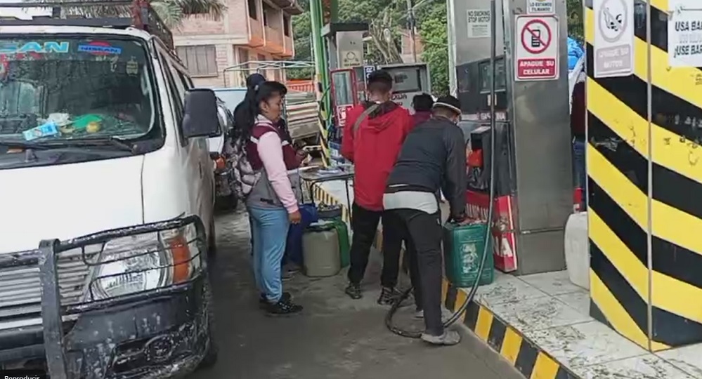 En ese contexto, los medios de comunicación televisivos, en despachos en vivo, reportaron largas filas en varios surtidores, por la falta de combustible. En las poblaciones de Yungas, estas filas son de varias cuadras, pero están hechas con bidones.
