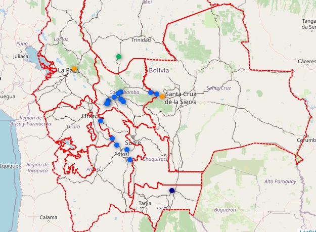 La ABC señala que los puntos de bloqueo en Cochabamba están localizados en: Llavini, Parotani, Suticollo, Paracti, San Jacinto, Paracaya, Rodeo, Entre Ríos y San Germán. En Santa Cruz, el único punto de bloqueo estaría instalado en Carahuatarenda, pero en Potosí figuran: Cruce Kharipuyo, Ventilla, Belen Pampa, acceso a Betanzos y Puente Río Hornos, en la ruta a Otavi.