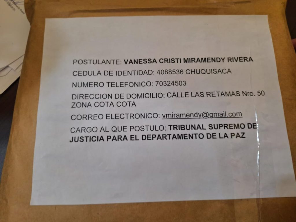 Para el Tribunal Constitucional Plurinacional se registraron 175 aspirantes, mientras que para el Tribunal Supremo de Justicia hay 265 postulantes. Por su parte, el Tribunal Agroambiental cuenta con 91 postulantes y el Consejo de la Magistratura con 1984.