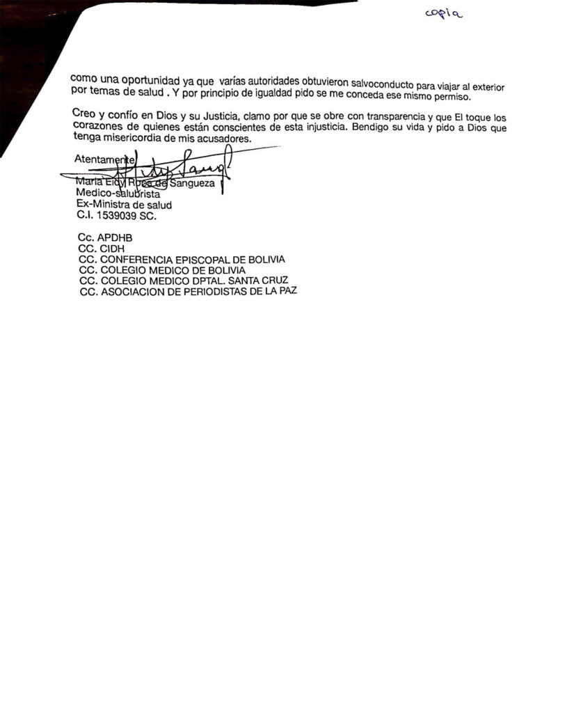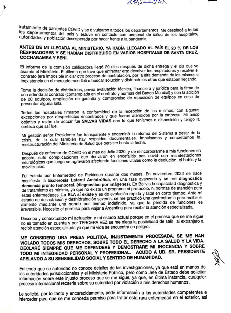 A continuación publicamos la carta in extenso, así como el video con el testimonio vivo de la exministra de Salud. Ahora solo resta esperar la respuesta del presidente Luis Arce.