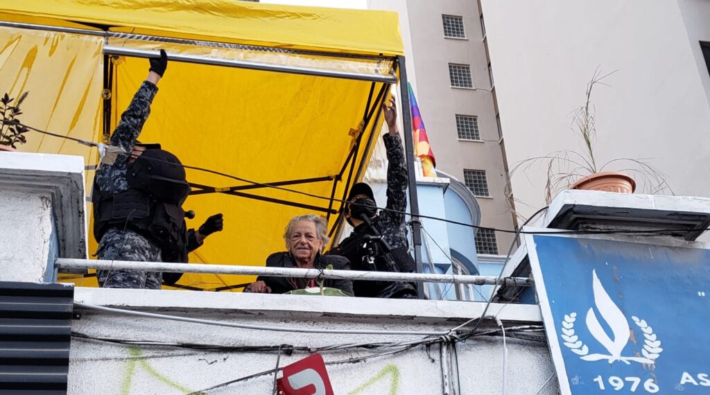 Por último, sobre el estado de salud de Amparo Carvajal, el médico y amigo personal de Carvajal, Víctor López, remarcó que la activista de 84 años presenta signos de deshidratación e hipertensión, pero aun así se niega a recibir atención médica. El galeno explicó que Carvajal mantendrá esa postura hasta que la Policía permita que las personas que quieren tener contacto con ella ingresen por la puerta principal -que permanece soldada-, y no así trepando la pared con una escalera.