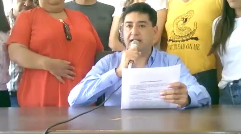 El representante nacional de UxL, Oscar Arce, acompañado por delegados de otros departamentos, dio lectura al comunicado en el que se anuncia una próxima firma con una sigla partidaria habilitada en el Tribunal Supremo Electoral (TSE), que aceptó incorporar en su plan de gobierno las ideas de la libertad.