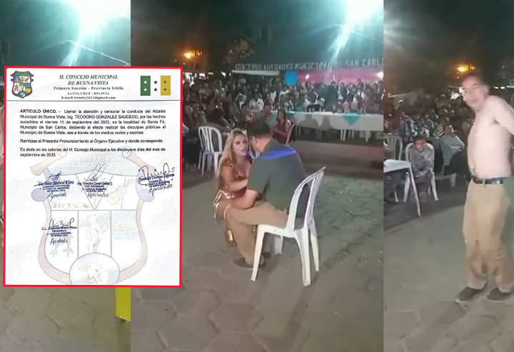 Por medio de un pronunciamiento, el Concejo Municipal de Buena Vista, en Santa Cruz, llamó la atención y censuró a el alcalde de ese municipio, Teodoro Gonzales, por los actos que protagonizó durante el show de una imitadora de la mexicana Gloria Trevi, en el que se lo observa tirado en el piso y semidesnudo. Por ese hecho, los concejales exigieron que el edil se disculpe públicamente, pero este respondió que no se critica así al cura de esa localidad, quien “baila y bebe”.