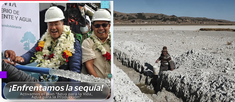De acuerdo con el viceministro de Defensa Civil, Juan Carlos Calvimontes, el Gobierno aplicó el Plan Plurinacional de Respuesta Inmediata a la Sequía que se encarga de atender a las familias afectadas. Realizó además la entrega de agua e insumos agrícolas con la finalidad de garantizar la seguridad alimentaria.