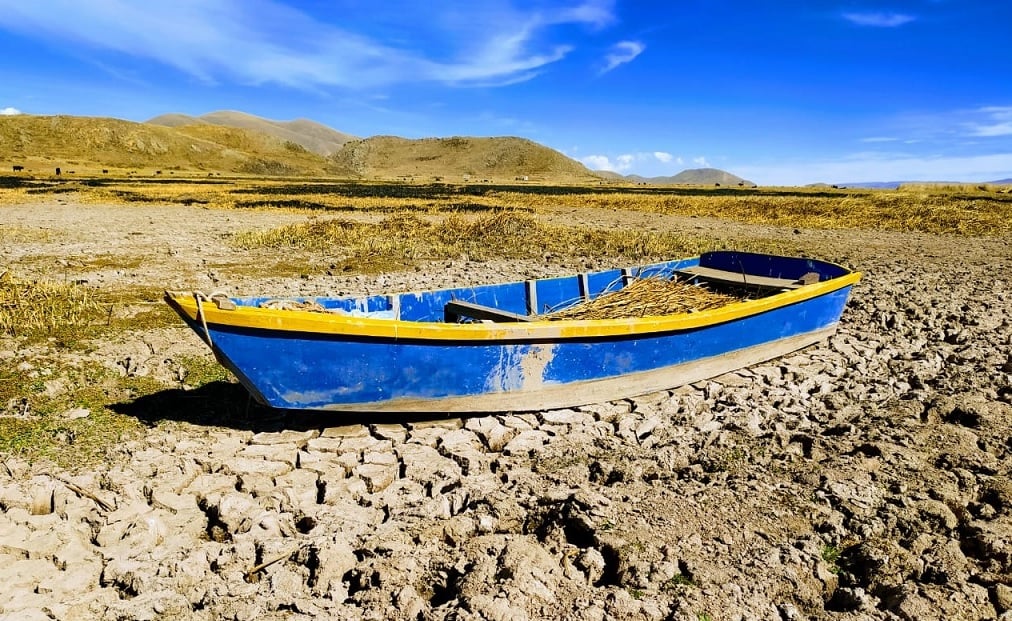 En hechos, los efectos de la sequía y el descenso de las aguas del lago sagrado golpearon duramente a las poblaciones que viven en las orillas. En la Isla de Suriqui, 55 familias que viven de la pesca y el trueque, sufren una terrible crisis a causa de la sequía. “El retroceso de las aguas los ha forzado a buscar nuevos bancos de peces, incluso internándose en aguas peruanas”, según un reporte de la Fundación Tierra.