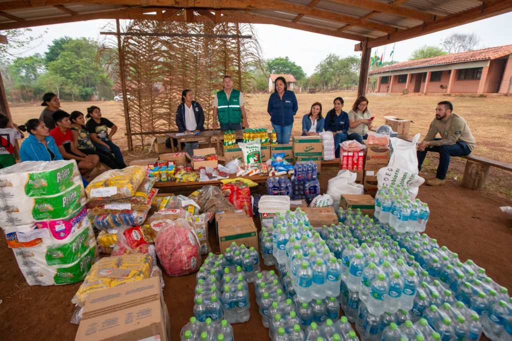 Concepción, 17 de octubre 2024 Familias de las comunidades El Regreso, Sagrado Corazón, Makanate, Puerto San Pedro y Monte Verde, todas pertenecientes al municipio de Concepción, recibieron este miércoles de parte de la Gobernación alimentos no perecederos, agua, bebidas hidratantes, ropa, calzados e implementos de seguridad para los bomberos comunales.