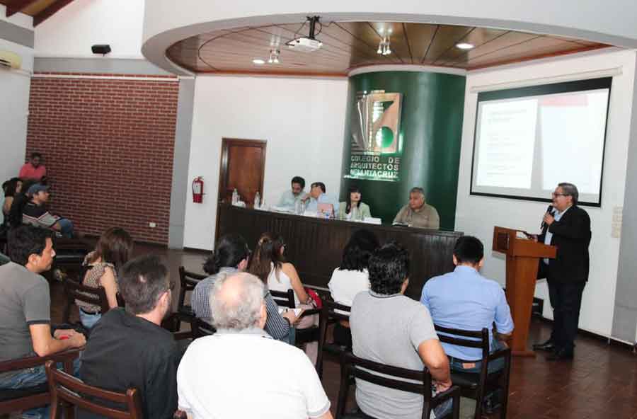 Virgilio Suárez, en representación del Colegio de Arquitectos de Bolivia, manifestó su complacencia con la realización de esta actividad, que da cumplimiento a la Ley 1373 del Ejercicio Profesional del Arquitecto sobre la obligatoriedad del sector público de convocar concursos de anteproyectos sujetos al reglamento del CAB.