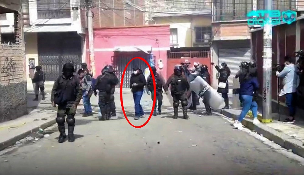 La Asociación Nacional de Periodistas de Bolivia (ANPB) y la Asociación de Periodistas de La Paz (APLP) emitieron un pronunciamiento para denunciar la presencia de “infiltrados”, que se hacen pasar por periodistas, “para realizar tareas de inteligencia y seguimiento a defensores de Derechos Humanos”. Como antecedente se tiene el caso del Director de Régimen Interior del Ministerio de Gobierno, Marco Antonio Cuentas, que usaba credencial de periodista para difamar el trabajo de los comunicadores durante el conflicto cocalero en 2022.