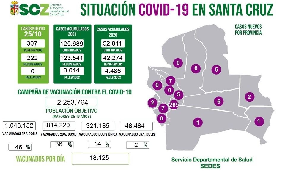 Santa Cruz 25 octubre 2021.- Después de varias semanas, el departamento de Santa Cruz supera los 300 casos positivos de Covid-19 en un solo día.