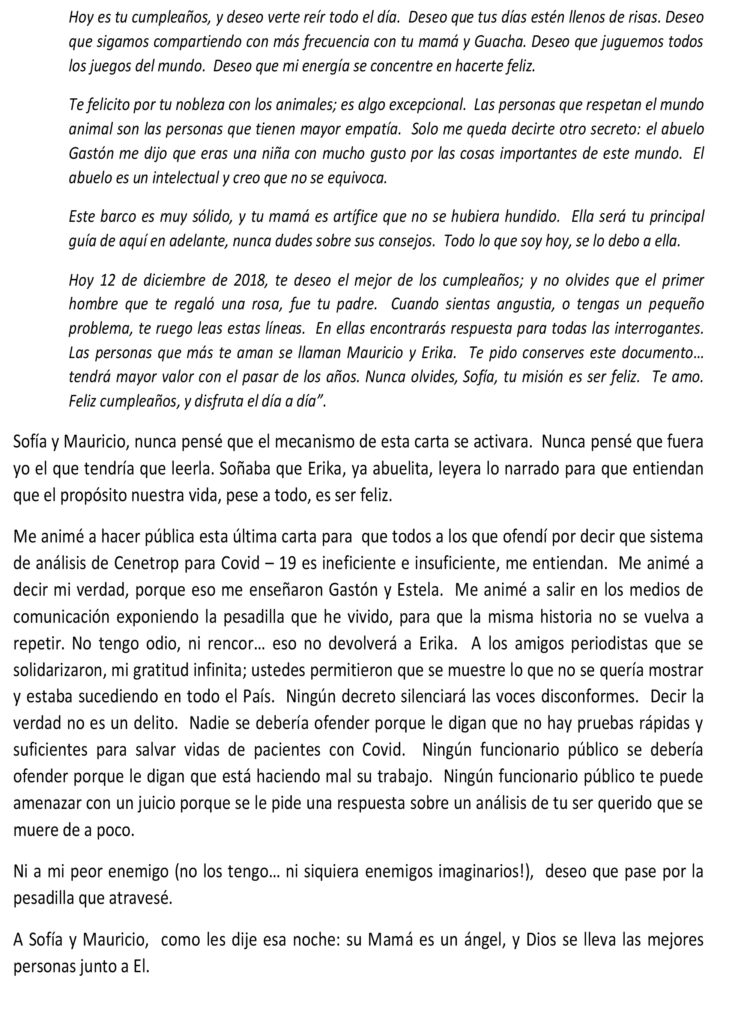 Hoy Mauricio escribe una carta, un desahogo, que vale la pena compartir. Así lo hacemos, esperando que cada una de sus palabras, en especial las que cierran la carta, nos lleguen al corazón a todos y nos conmuevan. En especial a las autoridades y cada uno de los principales responsables de luchar contra el Covid-19.