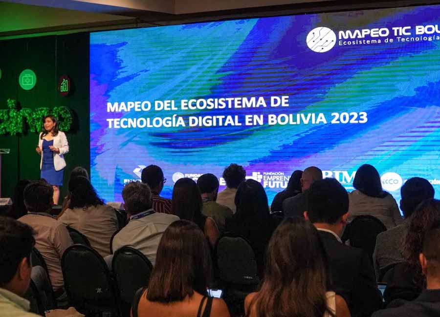 Ante más de 400 personas, entre las que se encontraban empresarios, investigadores, aceleradoras, inversionistas, periodistas y representantes de Venture Capital, Allison Silva, directora de la Fundación Emprender Futuro, detalló la situación del ecosistema de emprendimientos tecnológicos en el que mostró a Bolivia como un campo de acción para inversionistas.