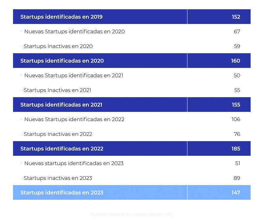 Pero el Mapeo TIC 2023 también identificó elementos negativos en el mercado del emprendimiento en negocios digitales, pues los 147 startups registrados esta gestión es la cifra más baja desde la primera vez que se hizo el mapeo, en 2019, cuando se contabilizó 152 startups. En 2022 se registraron 185 emprendimientos digitales, la cifra más alta hasta el momento, por lo que se concluye que en 2023 dejaron de funcionar 38.