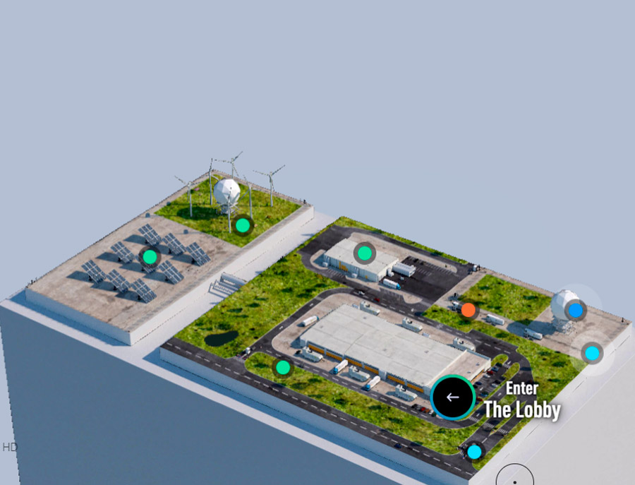 La visita virtual también muestra las turbinas eólicas y los paneles solares como ejemplos del tipo de energía renovable que la compañía está adquiriendo para cumplir ese objetivo. Mientras que el tamaño del terreno donde se ubica cada centro de datos es similar al de una tienda departamental grande, prácticamente cada metro cuadrado se utiliza para suministrar electricidad a los servidores, lo que convierte la electricidad en datos. Microsoft se ha fijado el objetivo de alimentar todos sus centros de datos y operaciones con el equivalente al 100 % de fuentes de energía renovable antes de que concluya el 2025.