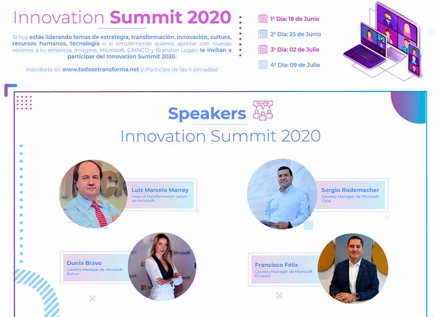 Bajo el lema de #TodoSeTransforma, dará inicio al Innovation Summit 2020, encuentro digital regional de líderes de negocios que entregará charlas prácticas y accionables, paneles y casos de éxito para inspirar la transformación de los negocios en Bolivia, especialmente en un escenario crítico como el que vivimos.